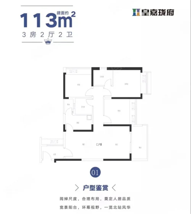 皇嘉珑府建面约3500㎡精致 广角视野,立体商业 尽揽都市胜境,皇嘉品牌实力商业运营 典藏臻品,专属缤纷生活 现楼发售,建面约60-113㎡臻稀住宅 都市核心,2梯5户无遮挡无对视 坐拥繁华。