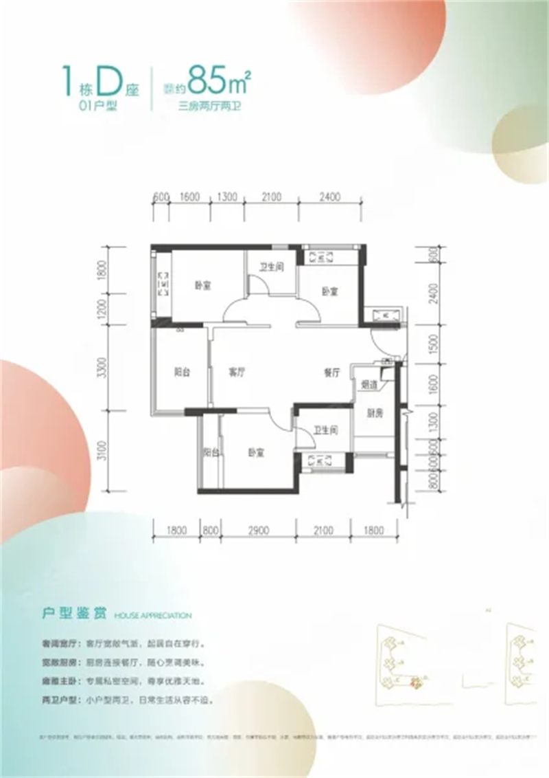 璟荟名庭由4栋建筑主体组成,分为1栋ABCD座,总建面86612.07㎡,建设用地面积16125.44㎡,计容建面60117.41㎡,其中住宅建面52234㎡,商业建面5700㎡,房源套数592户,户型套内建面<90㎡有534户,容积率3.7,机动车位658个。
