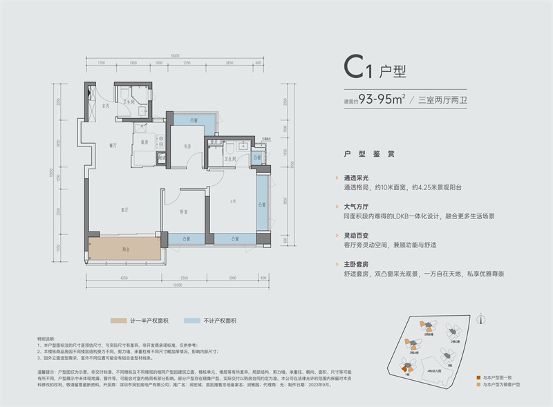 C-1户型 | 建面约93-95㎡三室两厅两卫