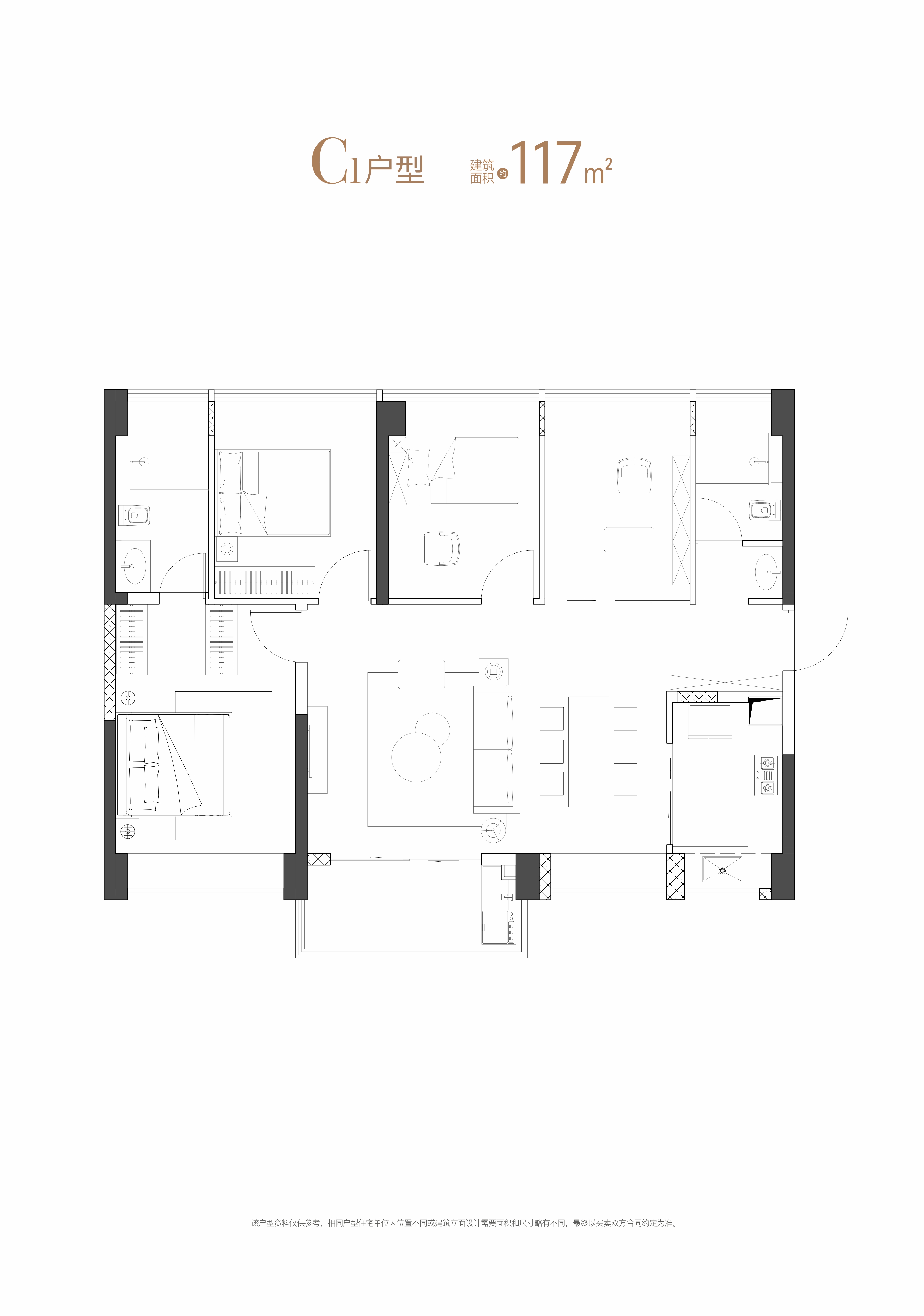 主力户型:建面约111㎡-174㎡纯居改善4-5房