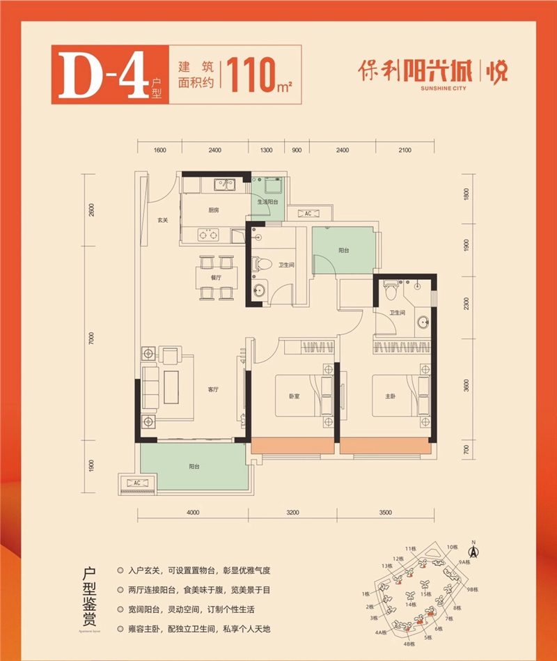 D-4户型——2房2厅2卫3阳台-建面约110㎡